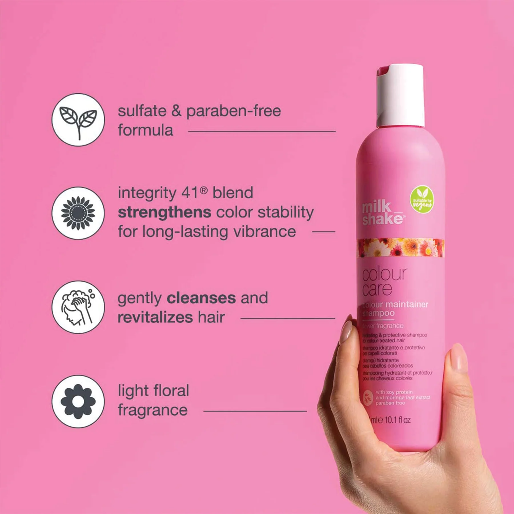 How to use:Â Apply the moisturizing shampoo to wet hair, gently massage the scalp and hair, and rinse thoroughly. Repeat the operation if necessary. For best results, use in conjunction with Milk Shake Color Care Flower Conditioner